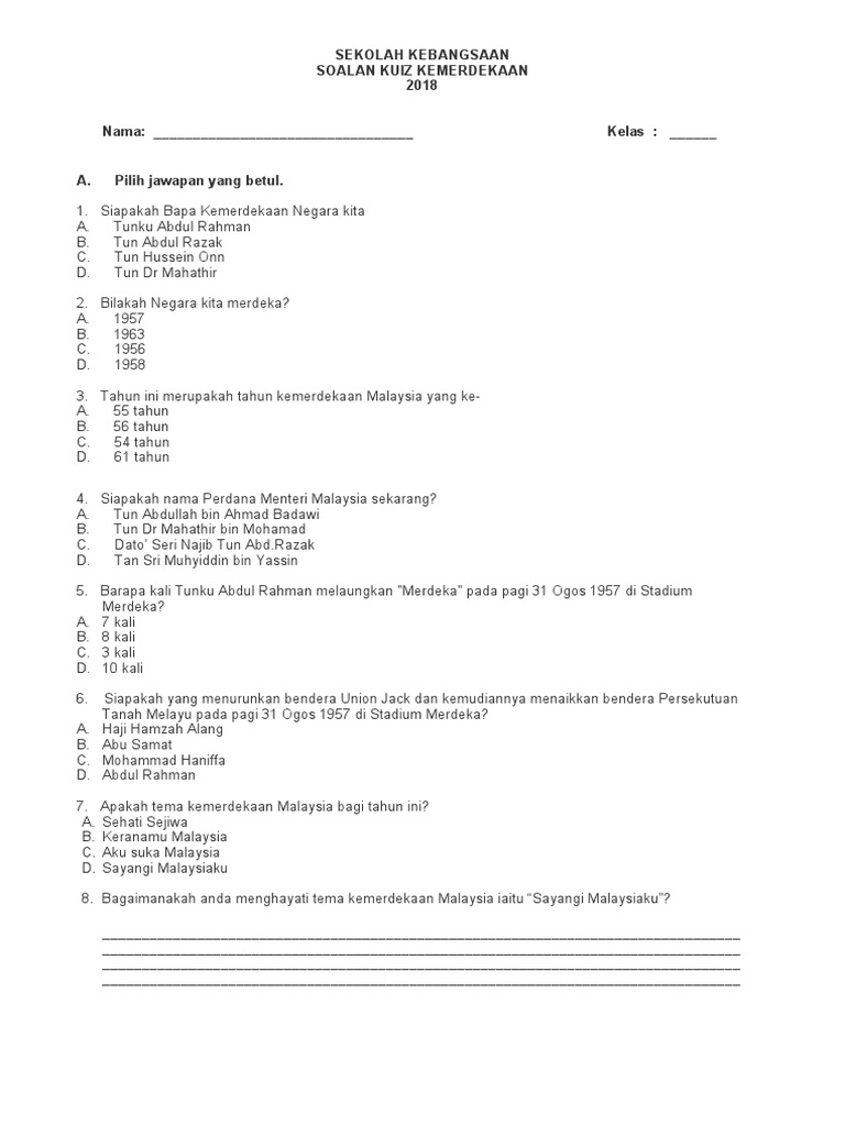 Soalan Kuiz Kemerdekaan Sekolah Rendah Soal Essay Tentang Kemerdekaan Indonesia Dan Setelahnya Livmtirst